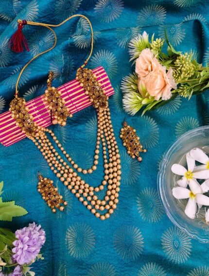 This unique bangle merges the beauty of pearls with sparkling American Diamonds. Adds sophistication to traditional or fusion wear.
