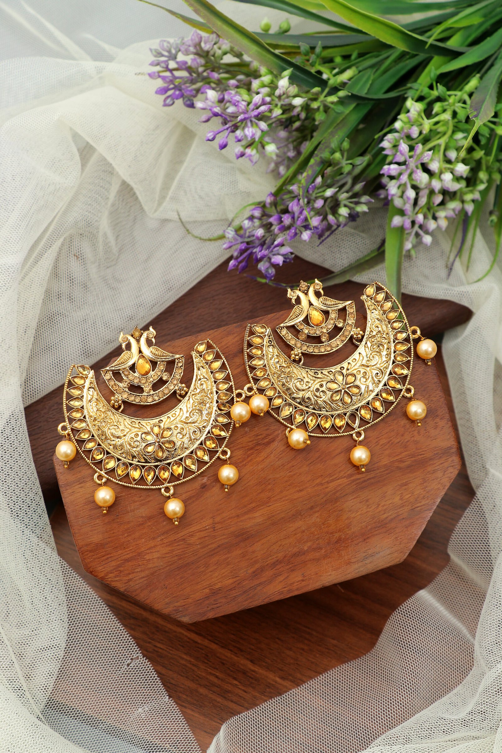 Pearl Chain Gold-Plated Chandbali Earrings